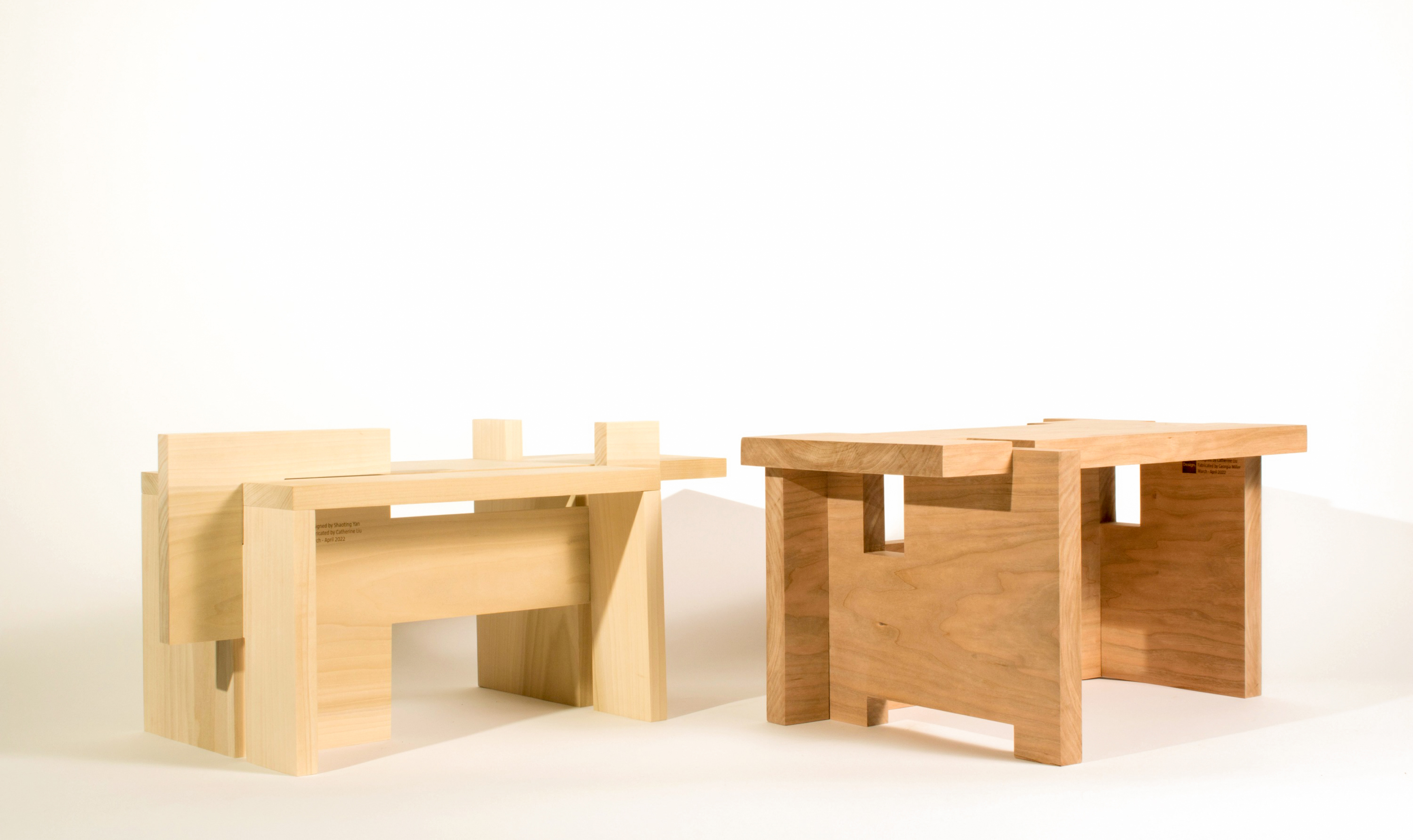 Geoform Stools are comprised of 4 wooden boards, designed and traded with a classmate for fabrication